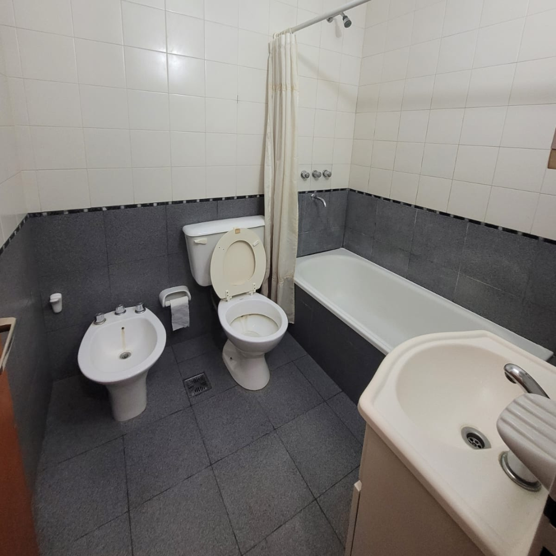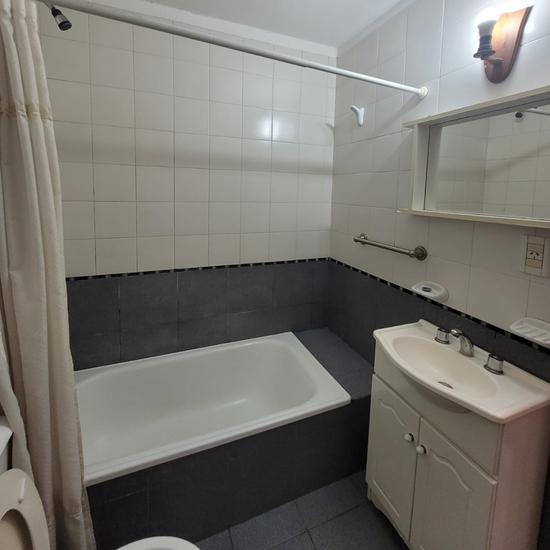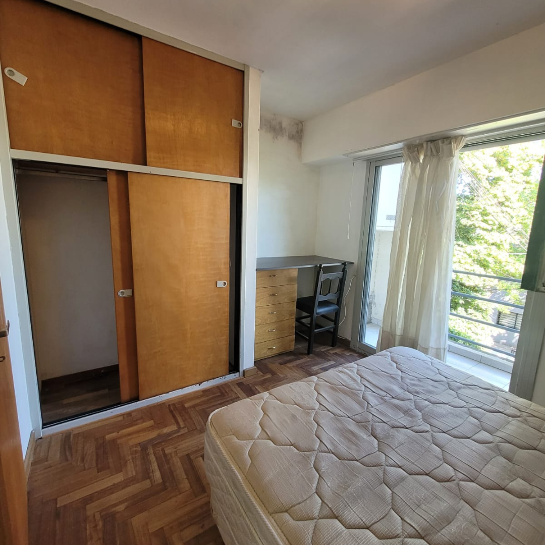 Subiendo las escaleras encontramos un baño completo con bañera y dormitorio con placard empotrado y pisos madera. Con acceso a un balcón pasante con vista al frente.