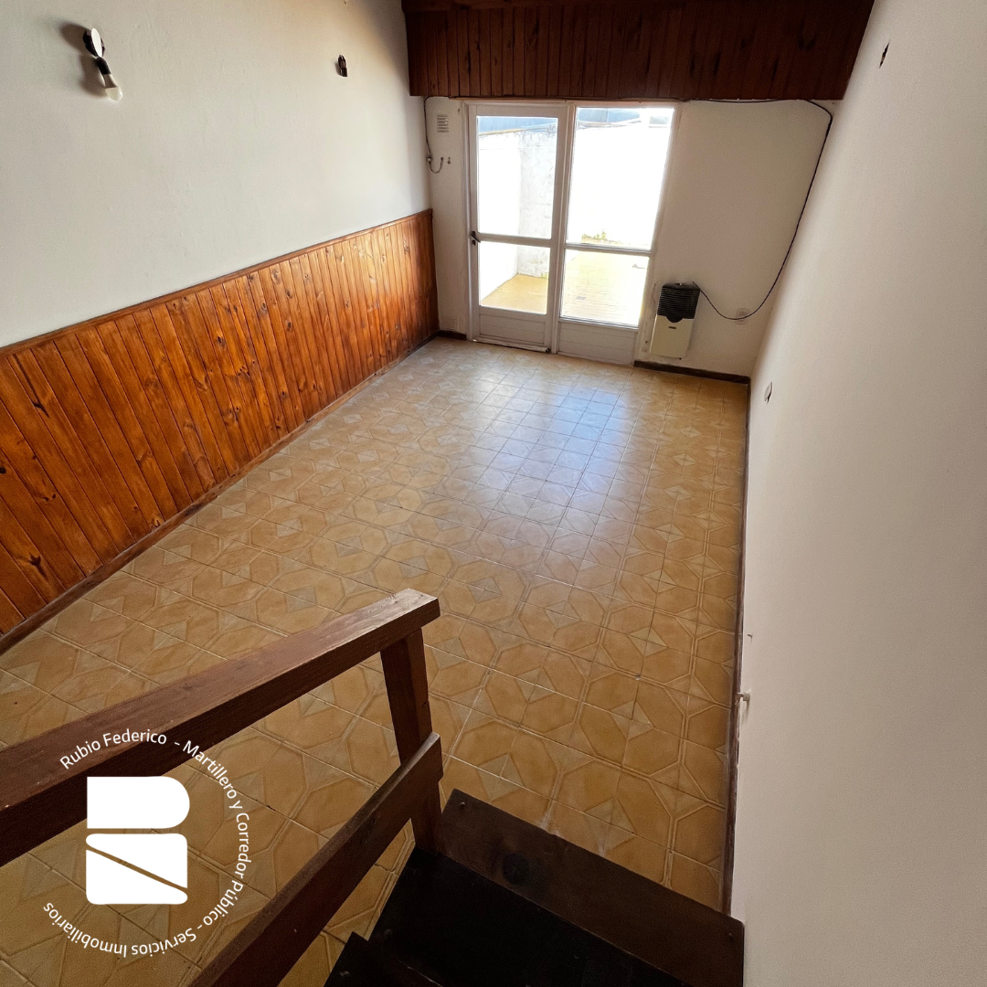 Ingresamos por el pasillo y accedemos a la planta baja, allí se encuentra el living/comedor, cocina equipada y patio delantero. Por escalera subimos al segundo piso donde se encuentra el baño y una habitación con piso de madera.